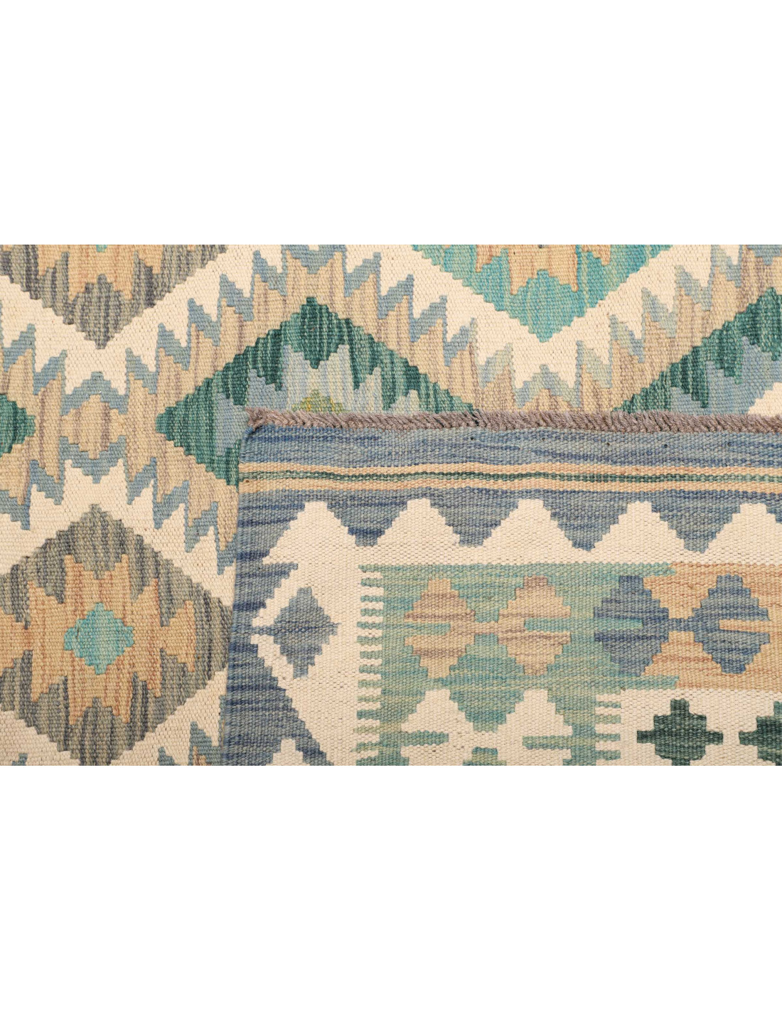 Tappeto Kilim Pakistan cm 178x246: Eleganza Geometrica in Blu e Beige